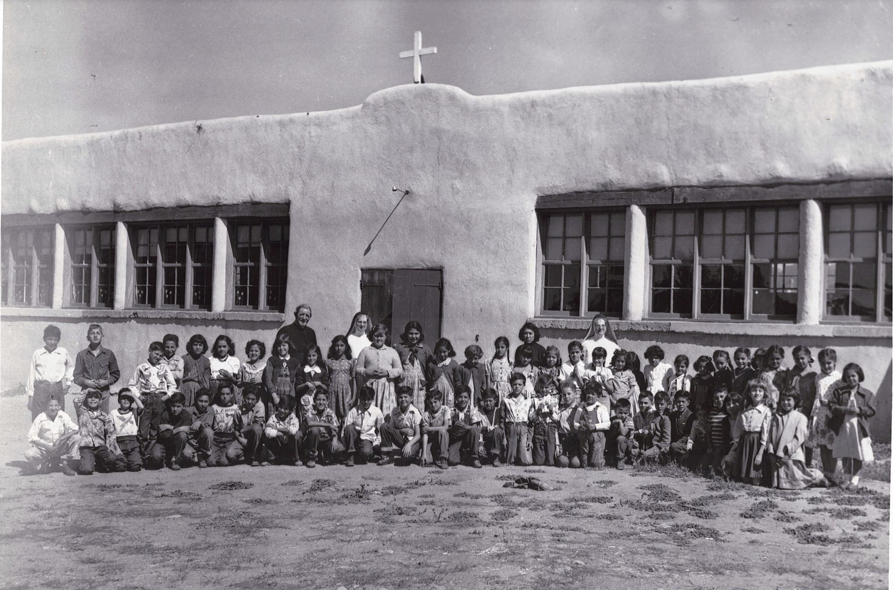 An earlier generation of students remembers the school as Peñasco High School, one of the first public schools in Peñasco Valley. The Archdiocese of Santa Fe founded the school, and local artisans were contracted to build it in 1931. What began as two classrooms was later extended in sections to house six classrooms separated by wooden accordion doors. Dominican Sisters from Grand Rapids, Michigan, moved to New Mexico to teach, and the Archdiocese leased the building to Taos County to operate the school.
